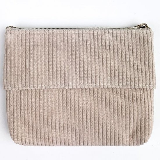 淡いベージュは大人っぽくてオシャレです。しかもコーデュロイ素材なので、季節感もあって旬なテイストをプラスできちゃいます。