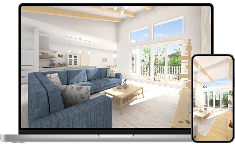 お施主様と打ち合わせしながら入力したデータがプレゼン・積算見積・設計図面・構造計算まで一気通貫で使用できます。