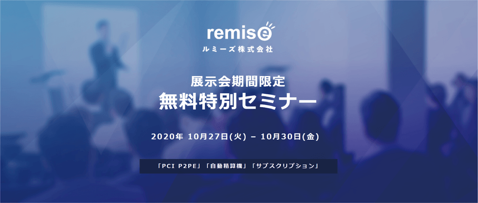 ルミーズ株式会社(以下「ルミーズ」といいます)は、2020年10月27日(火)~10月30日(金)の期間中、「PCI P2PE」「自動精算機」「サブスクリプション」の3つのテーマについて集中的に講義する無料オンラインセミナーを開催いたします。