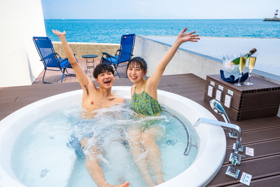 長崎県 島原温泉の創立113年を迎えた老舗旅館、ホテル南風楼(運営:株式会社ホテル南風楼)のグランピングatチャペル(グラチャペ)に水着着用のジャグジーバスが完成しました。