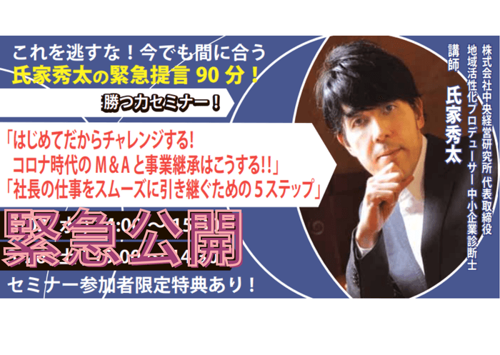 株式会社中央経営研究所(代表取締役社長:氏家 秀太)は、日本全国500社を超える企業を勝ち組に変えた“氏家 秀太”とプロの講師陣を迎え、「神奈川県リーダーズサミットミーティング2024」を2024年3月22日(金)に開催いたします。今回は50名を無料でご招待いたします。また、リアル+オンラインのハイブリッド開催となりますので、全国からご参加いただけます。