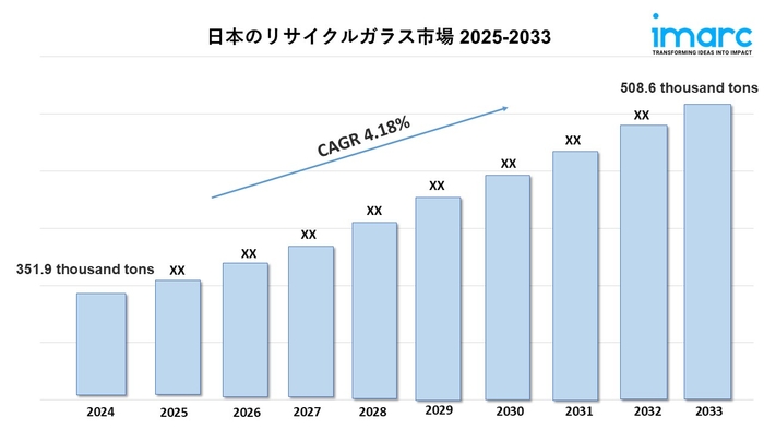 日本のリサイクルガラスの市場規模は、2024年に351.9千トンと評価されました。IMARCグループは、2025年から2033年の間に年平均成長率(CAGR)4.18%で、2033年までに市場が508.6千トンに達すると予測しています。