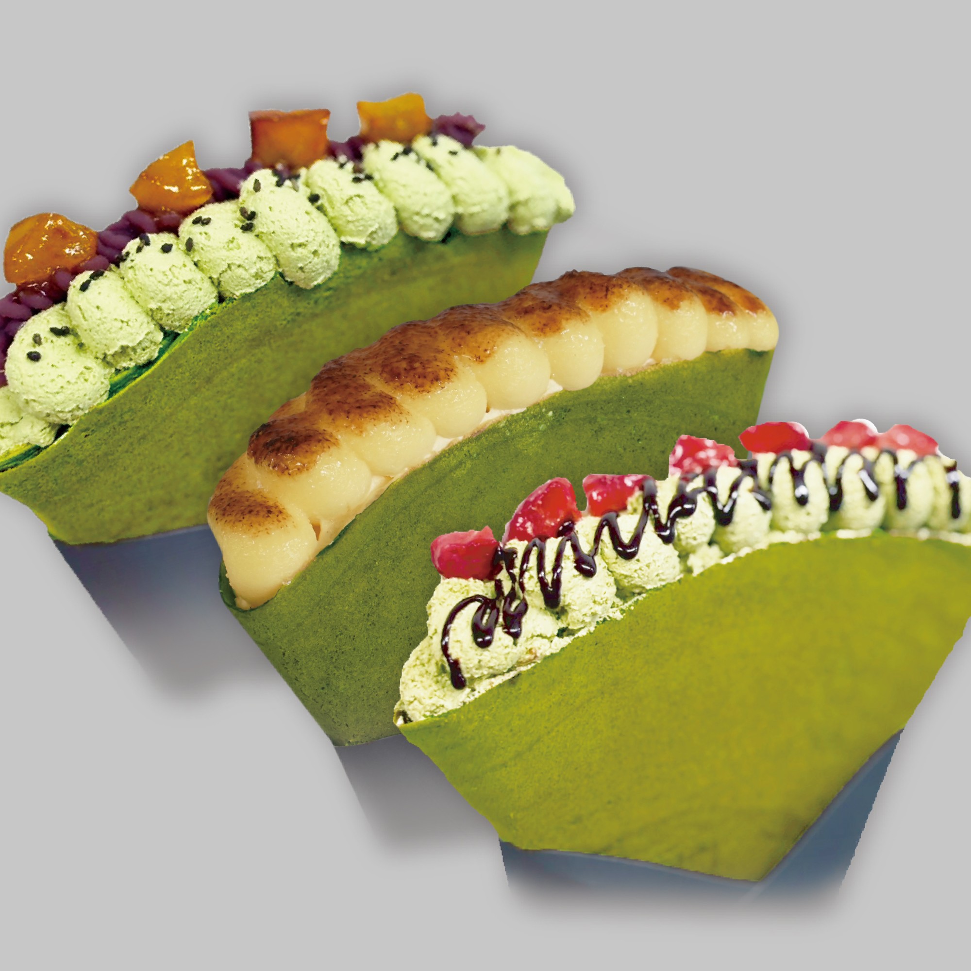抹茶のミルクレープ: 上質な抹茶の旨味を感じる抹茶生地に抹茶クリームを使用した抹茶づくしのクレープ