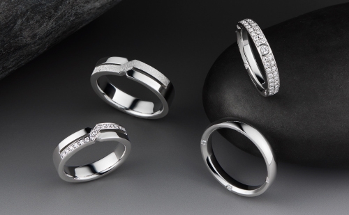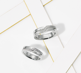 おふたりが出会い、ともに人生の旅を始める様を、二本の線路が一本に交わり合わさっていくデザインでスタイリッシュに表現。最新鋭の鍛造技術とクラフトマンの緻密な手作業により、クリエイティブな魅力が際立つリングが誕生しました。プレーンなクロス、チェック模様のオリジナルテクスチャー「スクラッチマット」、1列または2列のメレダイヤモンド。バリエーションとリングの幅を選べる8種から、それぞれの個性に合った一本を見つけてください。