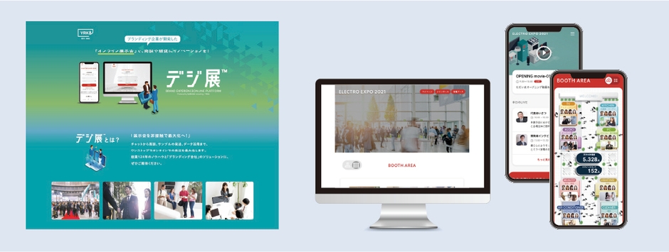 デジ展(TM)は信頼性の高いプラットフォームで、様々な企業のイベントで採用されており、主に展示会、商談会、BtoCイベントに活用できます(「デジ展(TM)」スペシャルサイト公開中。 https://www.yrk.co.jp/digten/ )。デジ展(TM)のデフォルトUIデザインであれば、イベントまで約3ヶ月で開催することが可能です。