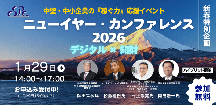 2026年1月29日、一般社団法人クラウドサービス推進機構(CSPA)は、中堅・中小企業の競争力強化を目指す無料イベント「ニューイヤー・カンファレンス2026〜デジタル×知財〜」を開催します。