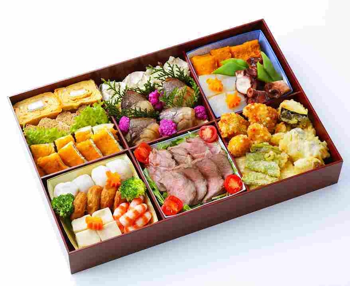 「中身は豪華で、さまざまな食材が色鮮やかに盛られており、見た目にも華やかで楽しめました。一つ一つの食材も、しっかりとした味付けで、大変美味しかったです。ボリューム満点で、男性でも十分満足できました。」と、ご購入されたお客様からの嬉しい声をいただきました。