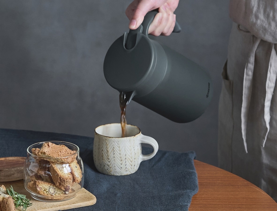 新製品の「真空断熱サーバー」は、大容量サイズであっても同様に長時間、コーヒー本来の風味と味わいを持続することができるので、長時間にわたりお気に入りのコーヒーを味わいたい方や、ご家族や友人とのコーヒータイムを楽しむ方にも、何度も淹れたり、温めなおす手間なくお使いいただけます。サイズは2サイズ(600mlと800ml)、カラーはインテリアやキッチン家電とも相性のいいシンプルなサンドベージュとダークグレーの2色をご用意しました。