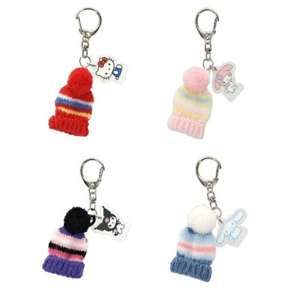 バッグやポーチに。サンリオのミニチュアニット帽チャームを付けて、普段のコーディネートにふんわり癒しをプラス。