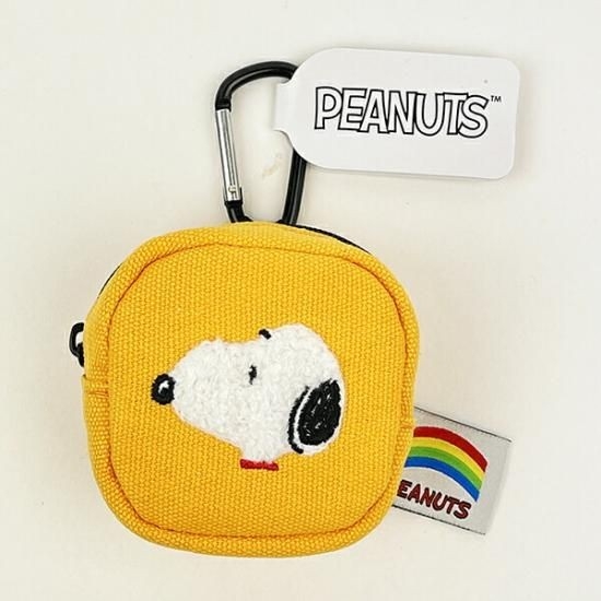スヌーピーのお顔の刺繍が愛らしいミニポーチ。たくさんのカラーバリエーションから自分好みのひとつを選べちゃう!