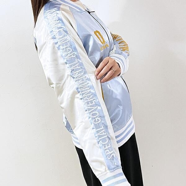 レイ推しは見逃せない。クールで上品なカラーのスカジャンです。ライトブルーとホワイトの配合が美しくて、クールで儚げなレイを表現したかのよう。