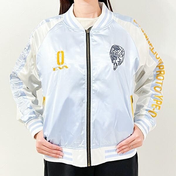 アスカモデルと同じくLサイズなので、女性ならばダボっと、男性ならばビシッと着こなすのがおすすめ。クールな中にもレイの秘めたる強さが感じられる、大人なスカジャンです。