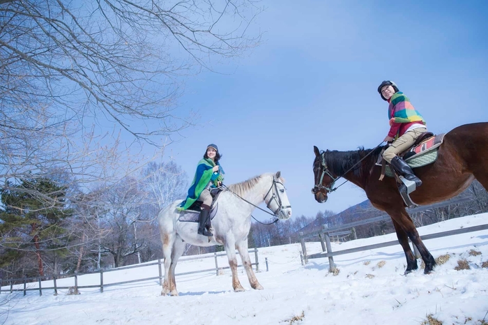 久住高原の雪景色を楽しむ「雪見乗馬」
