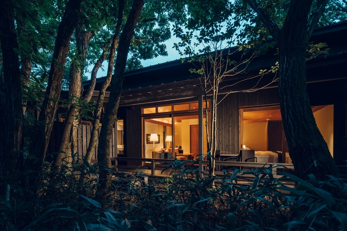 阿蘇くじゅう国立公園に位置し、8000坪の敷地にわずか12棟の離れが点在する温泉旅館。世界有数の規模を誇る阿蘇カルデラが育んだ大自然の恵みをテーマにした露天風呂付の客室。阿蘇五岳を望むテラスでのカルデラ体操や、大草原での乗馬体験なども楽しめます。