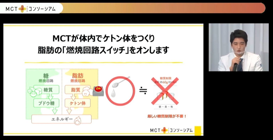<「MCTプラス・コンソーシアム」第1回 メディアセミナー開催> 無理なく脂肪が燃える体質に変わる『MCT』のメカニズムを発表 - MCTが脂肪の「燃焼回路スイッチ」をオン。 効率よくエネルギーを使えるカラダへ -
