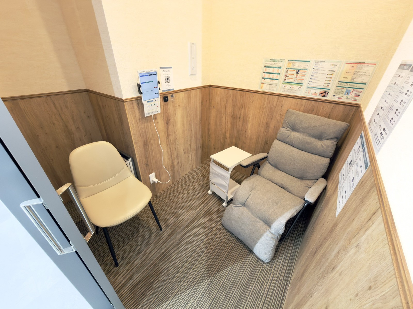 待合室やカウンセリングルームはすべて完全個室に対応。一方通行の院内動線で利用者同士が顔を合わせない設計で、身分証は一切不要。ニックネームで利用可能の完全匿名が可能です。