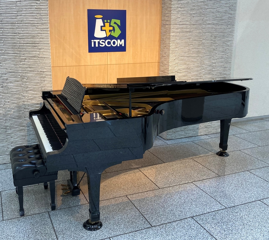 開局当時、放送センターのオープンスタジオには、このフルコンサートグランドピアノ(YAMAHA CF III)を常設しており、世界的プリマドンナ東敦子さん主宰で定期的にコンサートを開催するなど、文化振興に貢献してまいりました。長い歴史の中では、ピアニスト中村紘子さんや清水和音さんにもこのピアノで演奏いただき、当社内はもちろん、地域のみなさまにも親しまれてまいりました。
