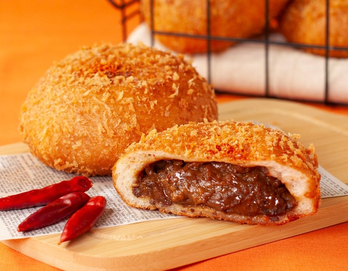 商品特徴:辛さも旨さも全力投球!食べ進めるほどにクセになる旨辛カレーパンです。