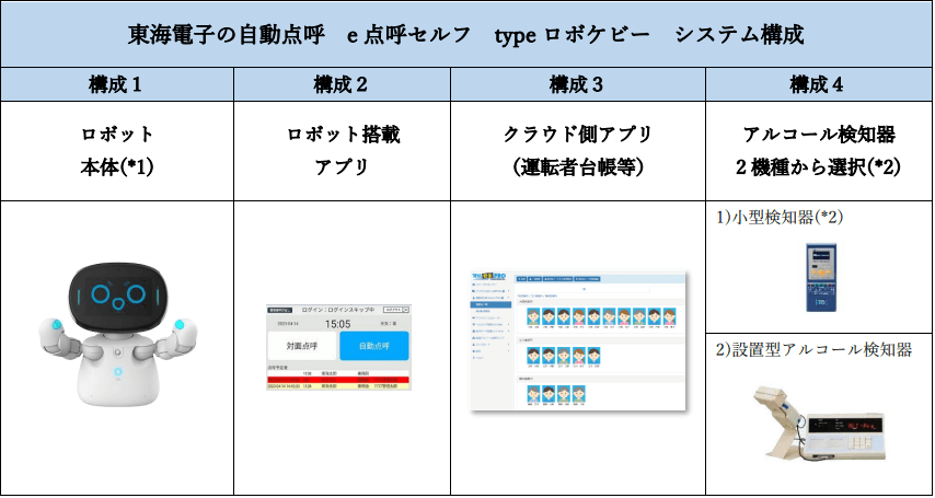 アルコール検知システム、自動点呼システム、運行管理システムを開発・販売する東海電子株式会社(本社:静岡県富士市 代表取締役 杉本 哲也)は、この度、国土交通省の認定を受けた自動点呼機器『e点呼セルフ typeロボケビー』の販売を2023年6月23日に開始しましたことをお知らせ致します。