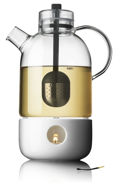1976年に設立されたデンマークのデザインカンパニーmenuによるガラスのティーポットとヒーター。
