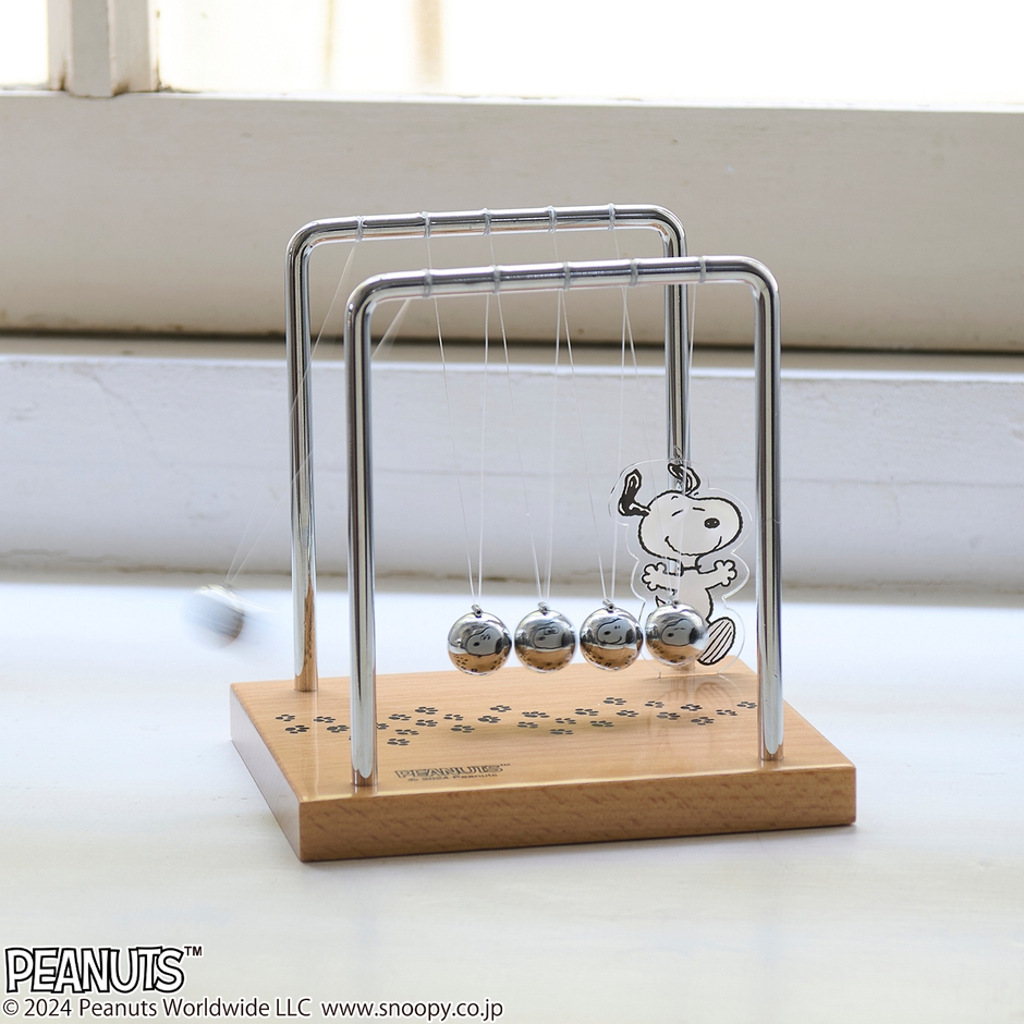 新発売のスヌーピーモデルは、ボールの一つ一つにスヌーピーの顔プリントをあしらい、台座には差し込み式のアクリルスタンドを付属しました。表情豊かなスヌーピーが愛らしく、ボールの動きにもマッチしたデザインで、大人から子供まで楽しむことができるユニークなインテリアアイテムです。