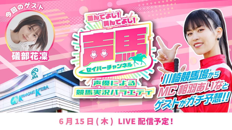声馬チャンネル実行委員会は、声優「相羽あいな」さんがMCを務める川崎競馬実況バラエティYouTube番組『声馬チャンネル(セイバーチャンネル)@川崎競馬場』の第18回ライブ配信に、声優「礒部花凜」さんを迎え、2023年6月15日(木)に配信いたします。