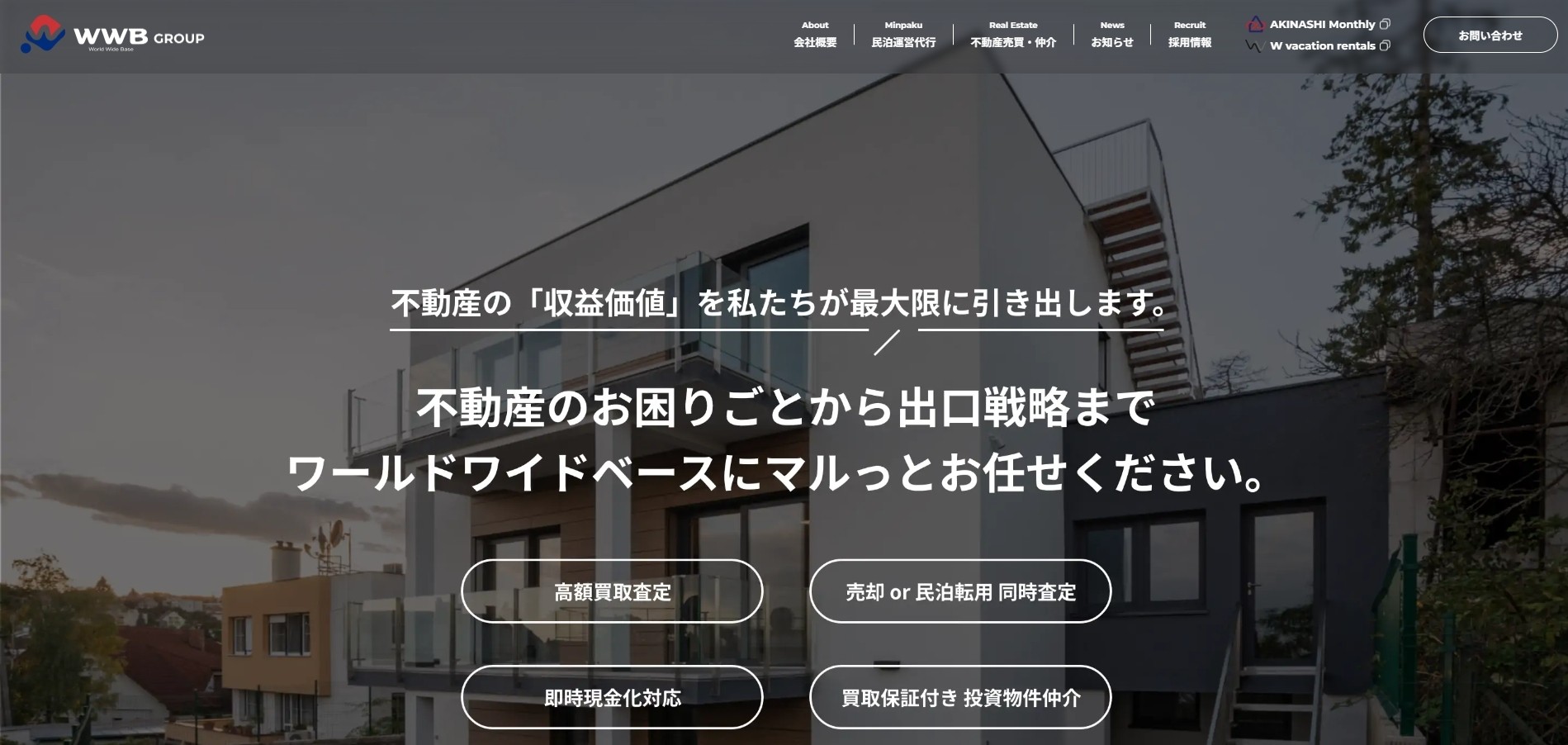 ・株式会社ワールドワイドベース:不動産仲介・買取・コンサルティングを主軸とし、収益不動産の確固たる基盤を構築。