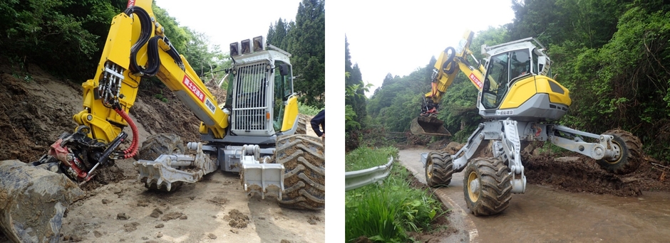 4脚4輪走行式油圧ショベル『スパイダー』実演説明会を開催 ~有資格インストラクター操縦によるスパイダー操作実演~