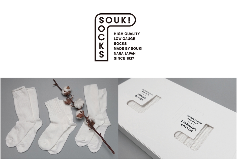 このコロナ禍の折、国外はもとより国内でも旅行に行くことが難しくなっています。長引く「おうち時間」や「リモートワーク」。そんな中でも、この「SOUKI SOCKS -Tasting Cotton-」を履き比べ、コットンの手触りや履き心地の違いから、コットンの産地へと目を向けていただけたなら、ささやかな心の旅をしていただけるのではないかと思っております。