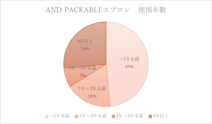 販売しているエプロンは約150種類以上のデザインがあり、累計販売数は100万枚を突破しています。使い込むほどに味が出るエプロンデザインの為、多くのユーザーが年単位でエプロンを使用しています。
