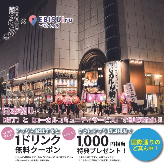 日本初‼️【国際通りのれん街】と【ローカルコミュニティサービス】で地域活性化!ご登録でドリンク無料クーポンがもらえる!