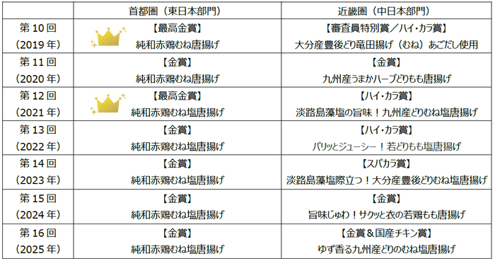 ▼ライフコーポレーションのからあげグランプリ🄬過去受賞歴