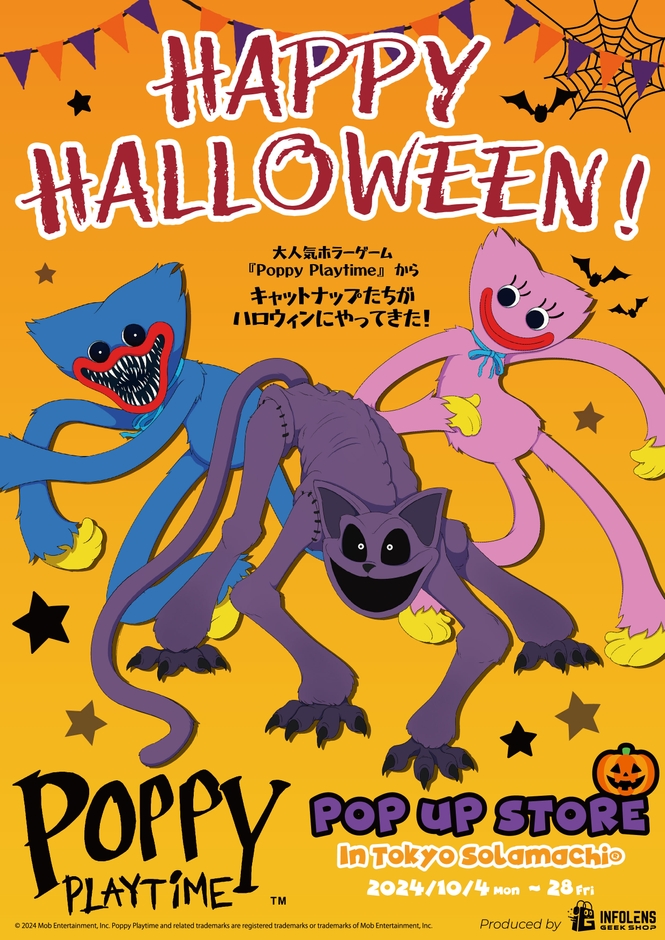 エンターテインメント関連商品を輸入・製造販売するインフォレンズ株式会社(本社:東京都中央区、代表取締役CEO:安川 洋)は、話題沸騰中のホラーゲーム『Poppy Playtime』(ポピープレイタイム)の公式POP UP STOREを東京ソラマチ(R)の2階にて2024年10月4日(金)~10月28日(月)の期間限定で開催することを発表いたします。