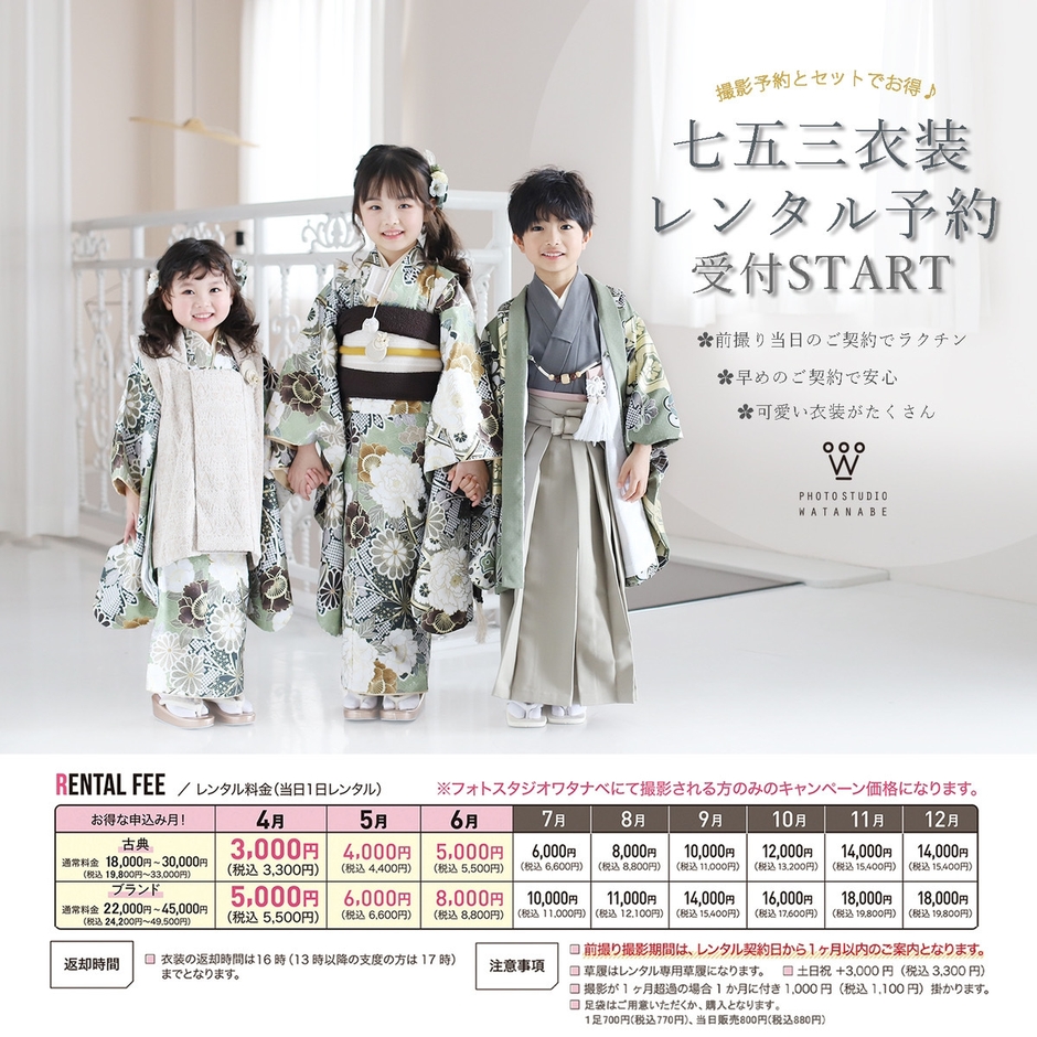 奈良県と京都府で展開する創業90年のフォトスタジオ 渡辺写真館(運営:株式会社渡辺写真館、所在地:奈良県奈良市、代表取締役:鈴木 大明)は、2025年に七五三を迎えられる方向けの、写真撮影とお参り着物レンタルのプランを2025年4月からスタートします。