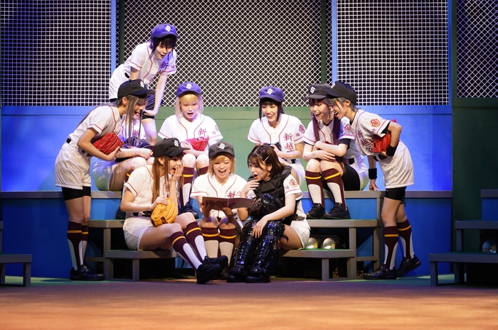 囲み取材では、まず、武田詠深役の大森が「今回は、ラストアイドルのメンバーだけでの初めての舞台なので、一生懸命気合いを入れて頑張りたいと思います」と挨拶した。続いて、山崎珠姫役の長月も「最後まで妥協せずに成長し合っていい舞台を作れるように頑張ります」とコメント。中村希役の小澤は、「グループ初の舞台ですが、私自身も初舞台。全員で千秋楽まで駆け抜けていきたいと思います」と意気込んだ。そして、岡田怜役の間島は「1カ月間、みっちり野球とお芝居をみんなで毎日顔を合わせて稽古してきたので、その成果をお見せできたら」と思いを述べ、川口芳乃役の岡村は「今回、野球のシーンがすごく多くて、スピーディーに動くシーンが多いので、けがないように、最後まで全力で楽しんでまいります」と語った。