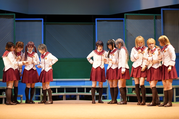 一方、小澤は「私は右利きですが、希ちゃんは左投げ・左利きなので、毎日、左手で素振りをして練習をしてきたので、スイングのフォームも見てもらいたいです。それから、今回、博多弁も話しているので、そこも聞いてもらえたら」と言い、間島は「怜は、部活が停部中も整備をして守りきってきた優しい子なので、その優しさや安心感を出して、この舞台で大黒柱になれるよう努力してきたので、そこは見てほしいです。それから、理沙とのプールサイドのシーンは、原作ファンの皆さんにも満足してもらえるように努力していますので、そこも注目してください」と話した。そして、岡村は「アニメ同様にツインテールが揺れるところも気に入っていますが、普段の学校で過ごしている可愛らしい芳乃ちゃんと、試合中に守備シフトとかを指示する野球に全力な芳乃ちゃんのギャップも見てもらいたいです」と笑顔を見せた。