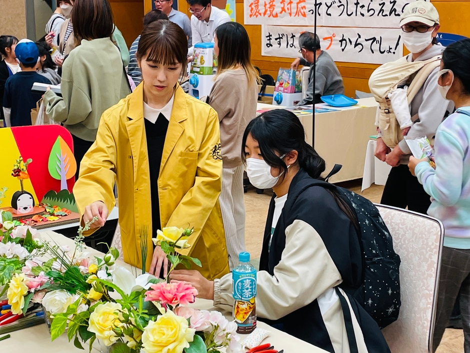 「SDGs体験」では、株式会社エミリオ・ロバはコクヨとコラボレーションし、本来破棄している間伐材でフラワーベースを制作し、高級アートフラワーをアレンジいたします。参加費は無料(要事前予約)で、制作したアレンジメントは持ち帰り、自宅に飾って楽しんでいただけます。また、鞄の製造・販売を行う丸富商会の端材を使用したオリジナル革製品づくり(参加費1,000円)や、粘着テープ専業メーカーの菊水テープが、無料のクラフトテープのカプセル自動販売機を設置するなど、名張市が誇る3つの魅力的な技術を体験してもらいました。