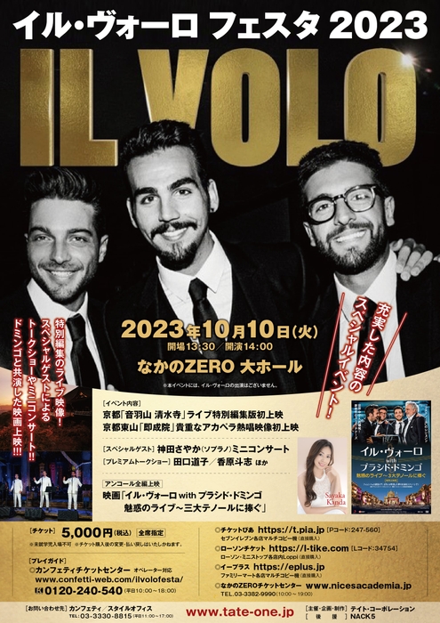テイト・コーポレーション主催、『イル・ヴォーロ フェスタ2023』が2023年10月10日 (火)になかのZERO 大ホール(東京都中野区中野2丁目9番7号)にて開催されます。