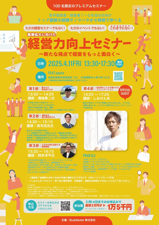 しみけん氏は参加いたしませんが、講師陣や他企業の方と交流できるチャンスです。
