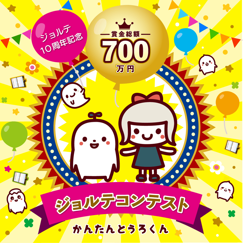 ジョルテはこのたび「かんたんとうろくん」という行事予定表をおどろくほど簡単に作って共有できるサービスと、「がっこうとうろくん」という学校の行事予定表を公開するサービスを始めました。使ってみた感想や、いい感じになった活用事例を紹介して頂くことで表彰させて頂きます。他にも、ジョルテを愛用して頂いている方、こだわりや自慢、感想、改善提案などでご応募できます。コンテストの賞金は、抽選でのギフト券2,000円から、なんと優秀賞の賞金30万円まで、総額700万円。どなたでもご応募可能ですので、ぜひご参加ください。