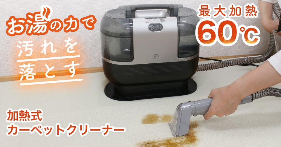 最大加熱約60℃のヒーターを搭載したお湯の力で布製品の しつこい汚れを落とす加熱式カーペットクリーナーを8/22より発売