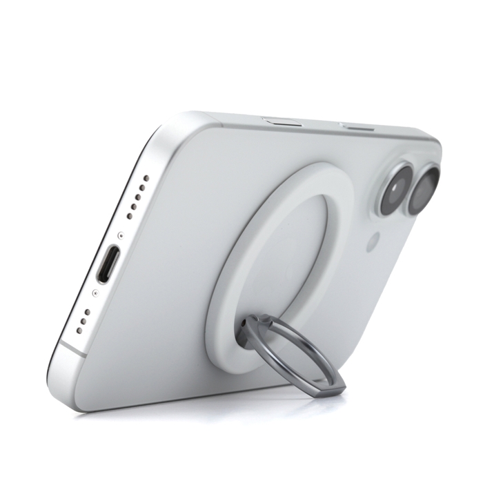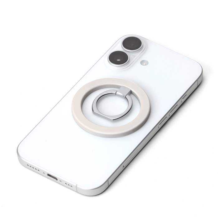 本商品は、MagSafe機能をもつスマートフォンに、強力な磁力でピタッとくっついてスマホを持ちやすくするリングホルダーです。