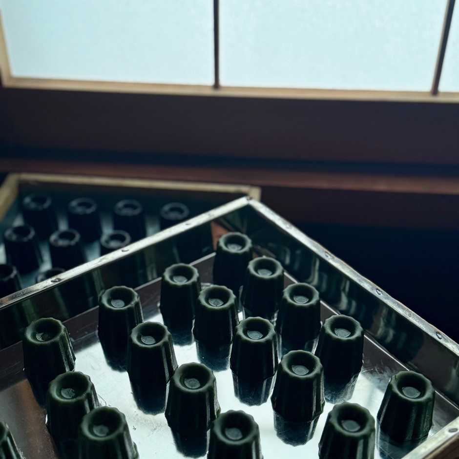 伝統的な羊羹をフランス菓子の「カヌレ」型で仕立てることで、見た目にも愛らしく現代的な印象に。小ぶりでコロンとしたフォルムは、手土産やティータイムのおともにもぴったりです。