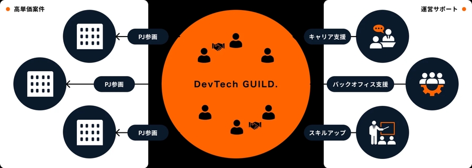 「ゲームや漫画のギルドのように、仲間と力を持ち寄れば、個人の限界は超えられる。私たちはそれを現実の仕組みとして形にしました。DevTech GUILDは、共創を軸に『稼ぐ×育つ』を両立し、個では届かなかった挑戦を可能にします。長く健やかに働ける基盤を育てていきます。」