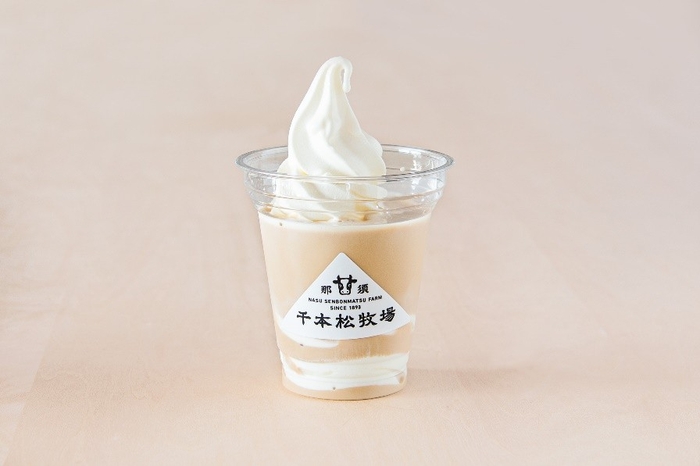 自慢のソフトクリームにカフェインフリー、砂糖不使用のミルクコーヒーを注いだ、やさしい甘さのシェイク。