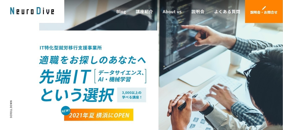 障害ある方が「AI・機械学習」「データサイエンス」など 先端ITを学べるIT特化型就労移行支援事業所「Neuro Dive」の 2拠点目を横浜に7月開所 96%が「ITスキル向上」を実感、大手企業への就職者も多数輩出! 6月15日より応募受付開始