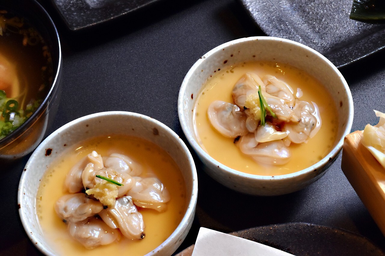 天然本まぐろ串焼き+めひかり一夜干し/あさり茶碗蒸し/