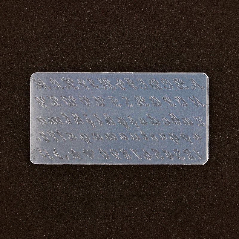 昨年発売した「暖かい明朝系書体」、「フレンドリー系書体」、「オトナ丸ポップ系書体」に加え、4種類目のオリジナルフォントを使用した、A-Z、a-z、数字、マーク等が1枚のシートになったシリコンモールドとなっています。