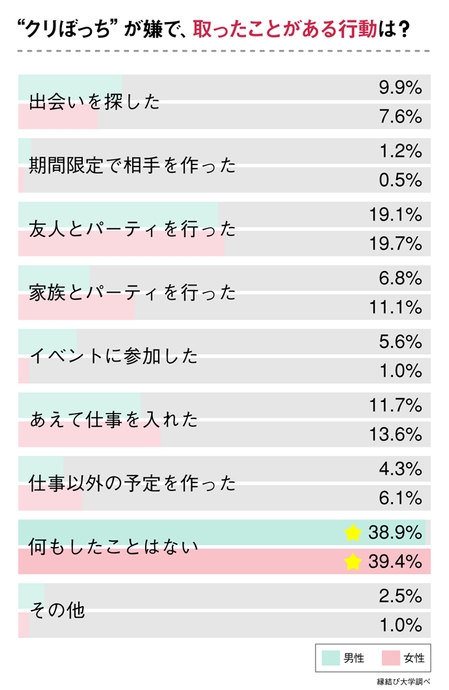 男女とも「“クリぼっち”対策は何もしない」が1位に