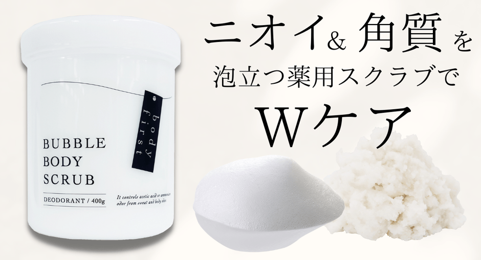 「body first (ボディファースト) 薬用ボディソープ&スクラブ」 疲れとともにニオイもしっかり落として、気品ある香りで明日を迎えよう